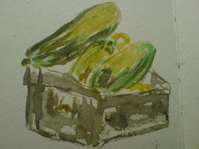 E para ilustrar, que está ficando demasiado palavroso, trouxe dois desenhos feitos em dois fins de tarde num sítio onde planto umas couves e uns alhos (plantam para mim, mas eu dou todo o meu maior apoio!)